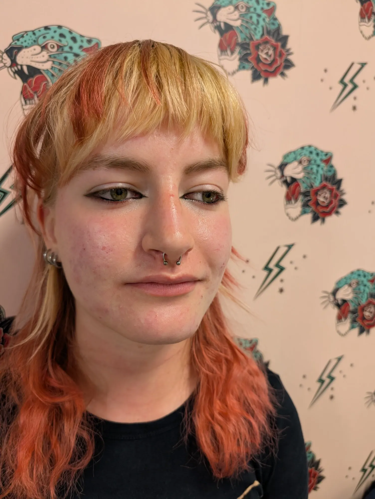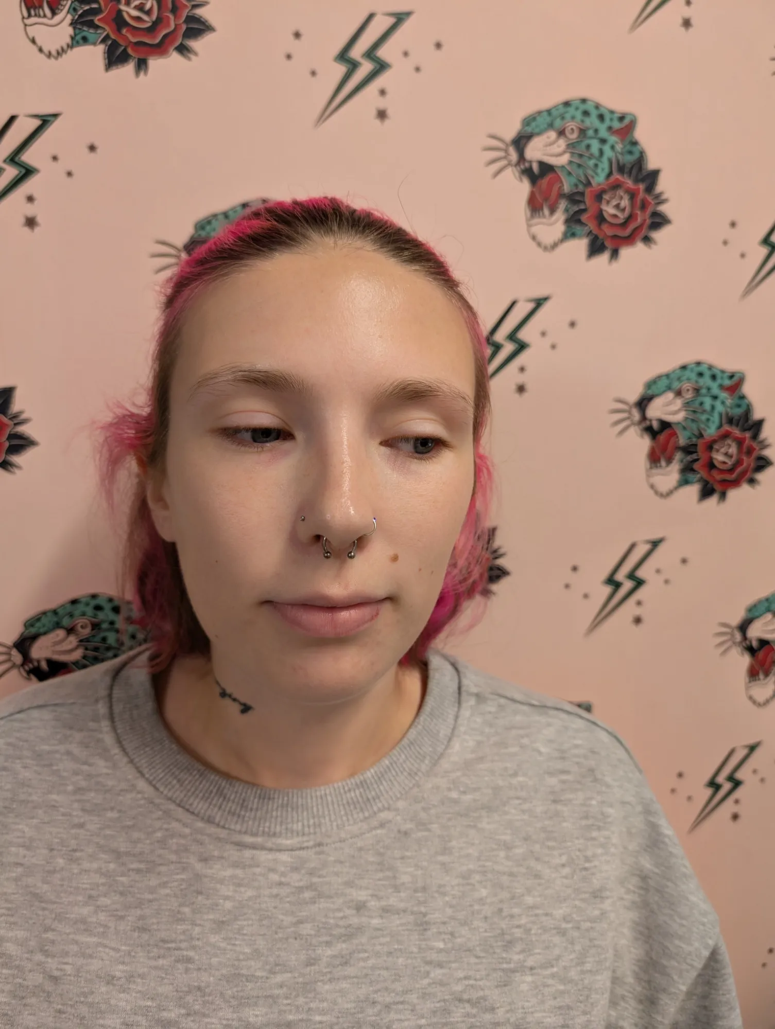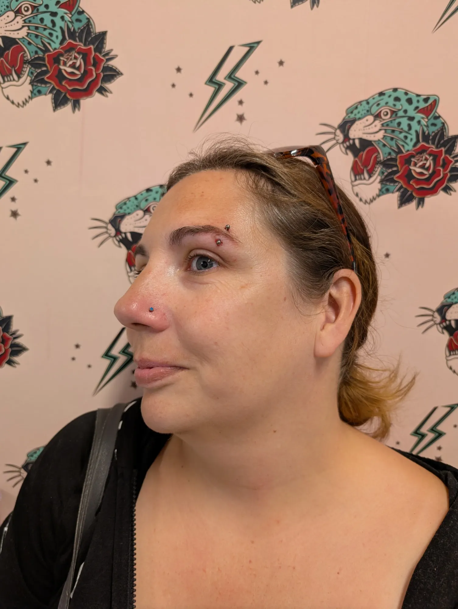 - Both Nostril / Nose Piercings and Septum Piercing - Also, lip piercing