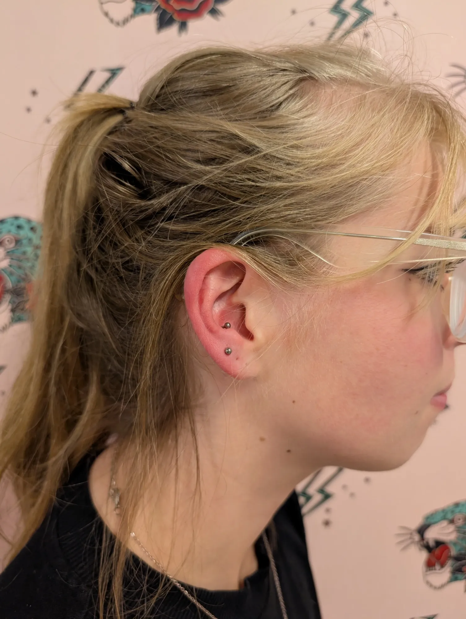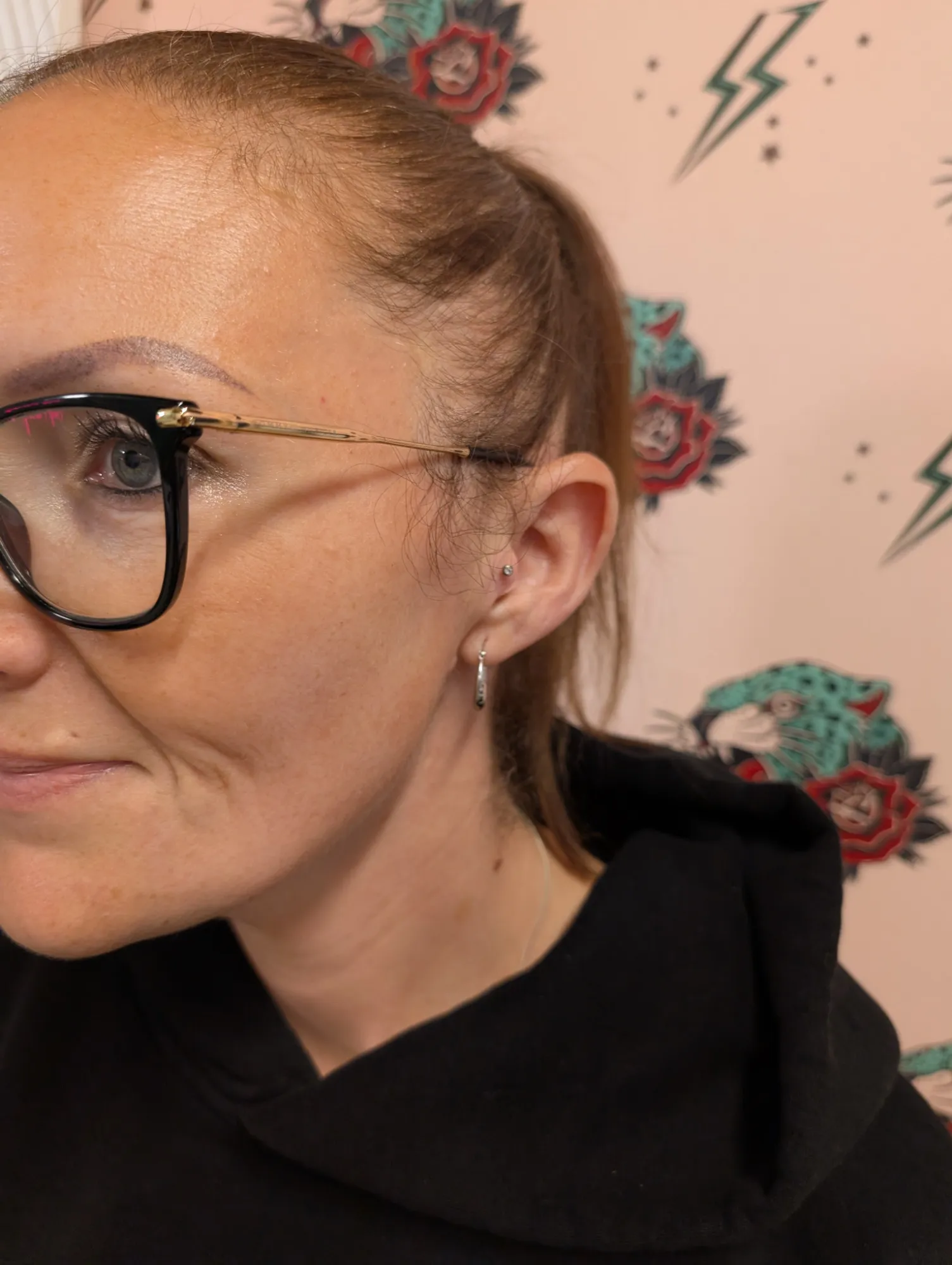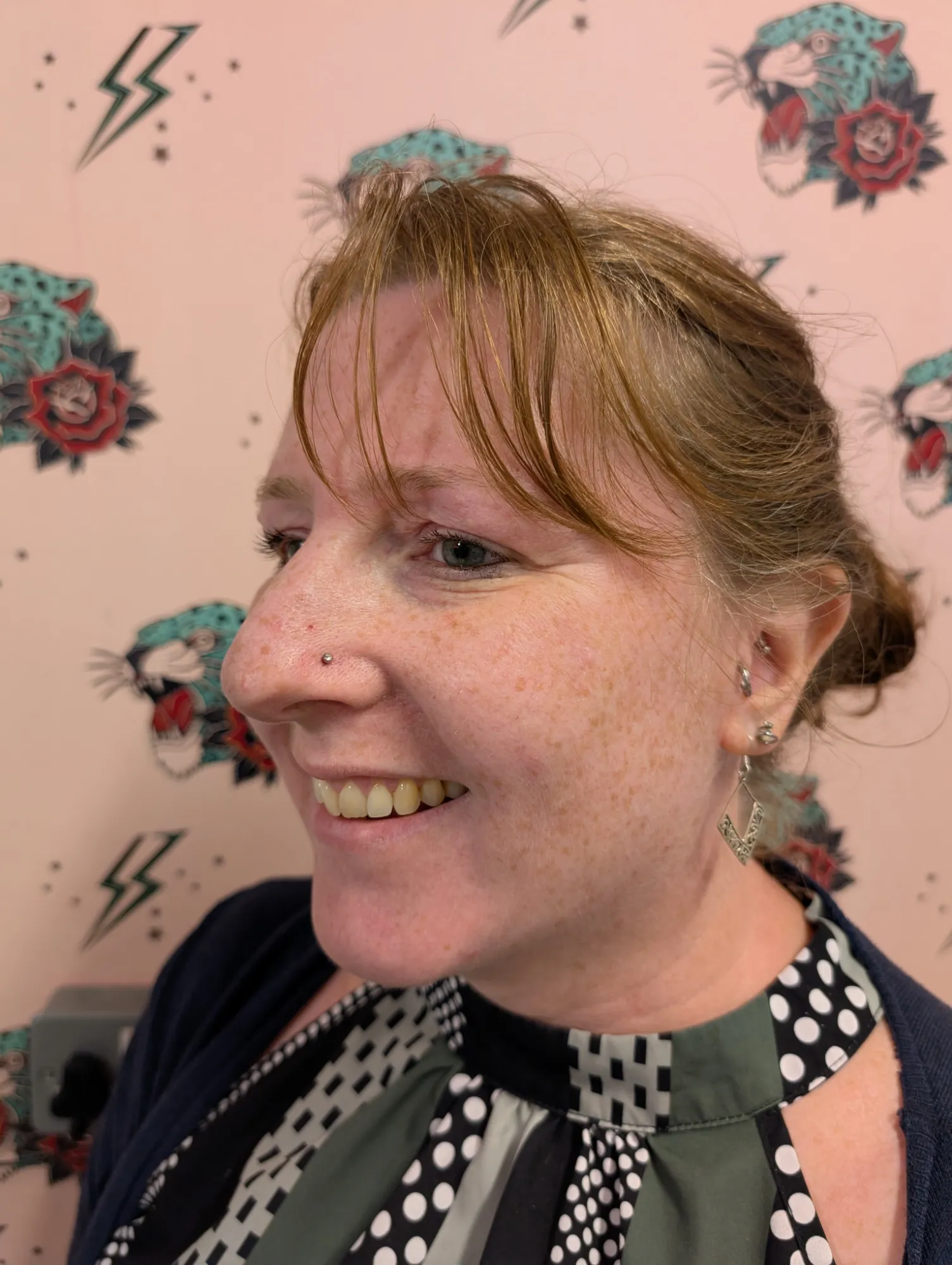 - Both Nostril / Nose Piercings and Septum Piercing - Also, lip piercing